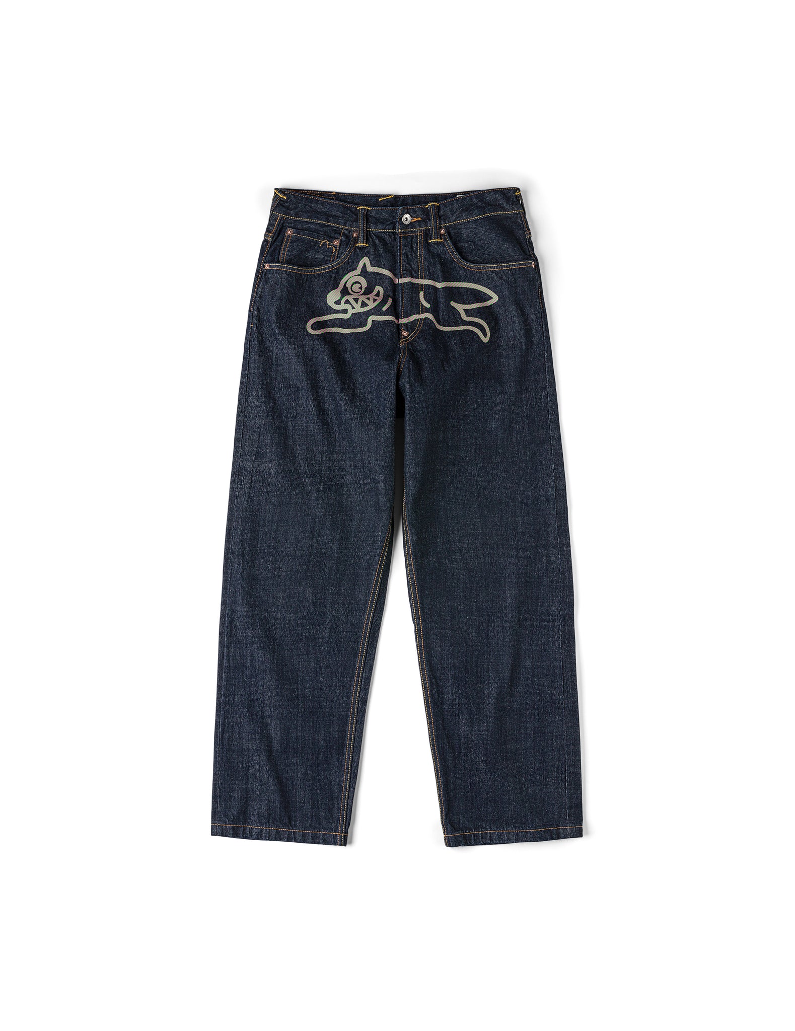 ICECREAMDAICOCK プリント バギージーンズ – リンス インディゴ