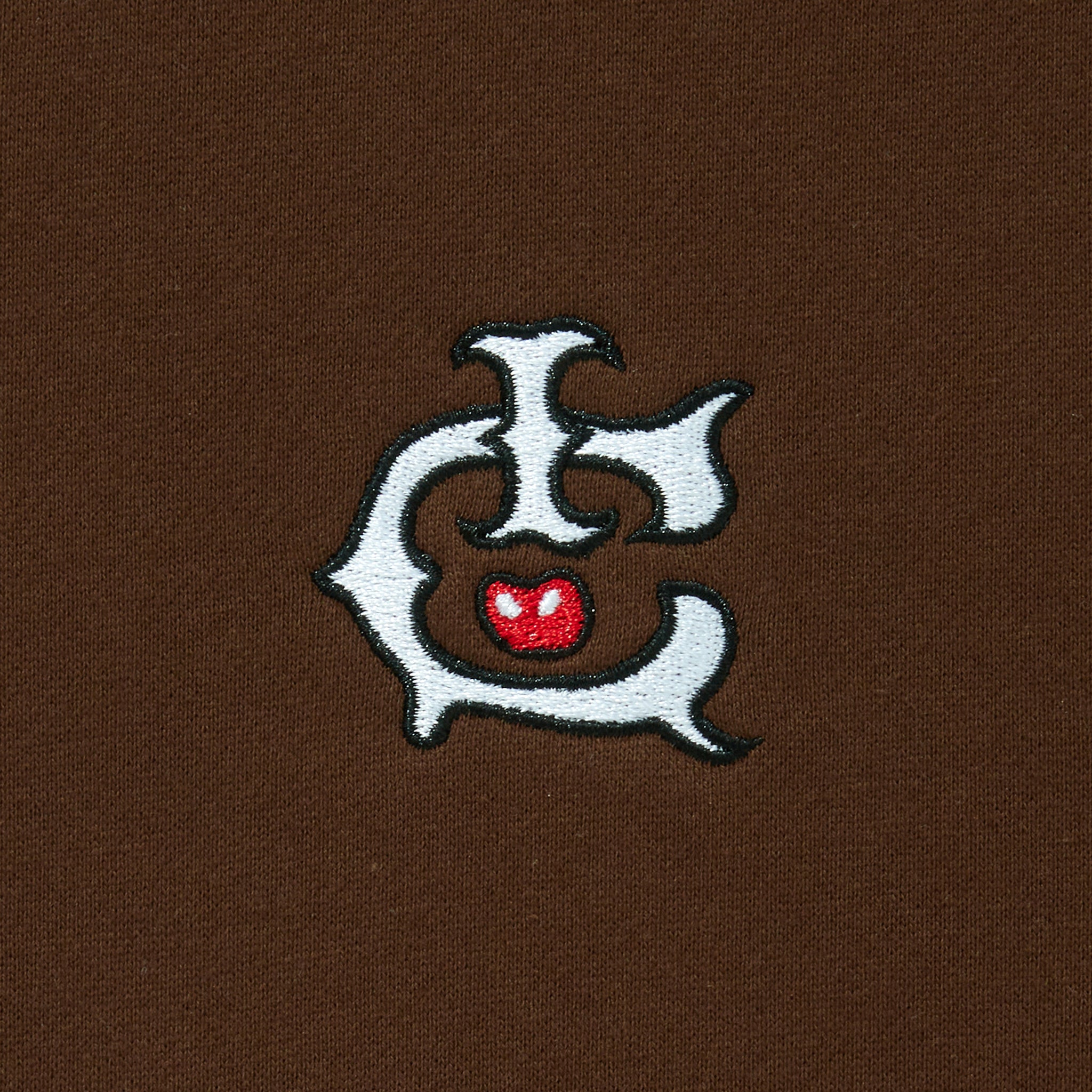 袖にはおなじみのハートロゴパッチを配置し、細部までブランドらしいディテールを演出。