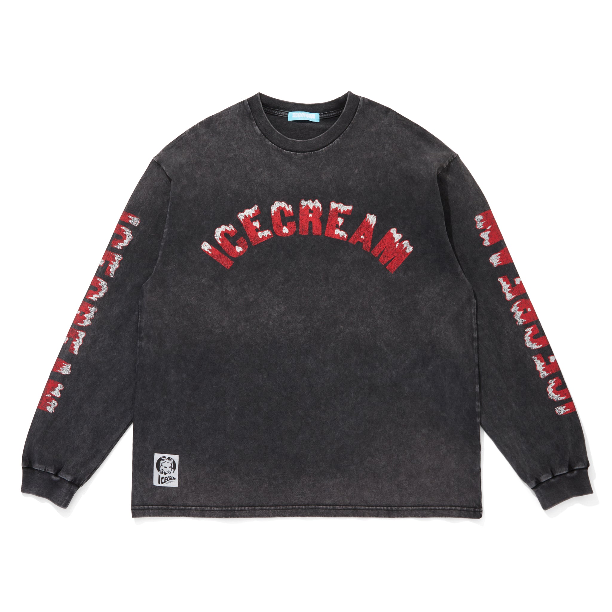 フロントと両袖にICECREAMのアーチロゴを大胆にプリントしたロングスリーブTシャツ。