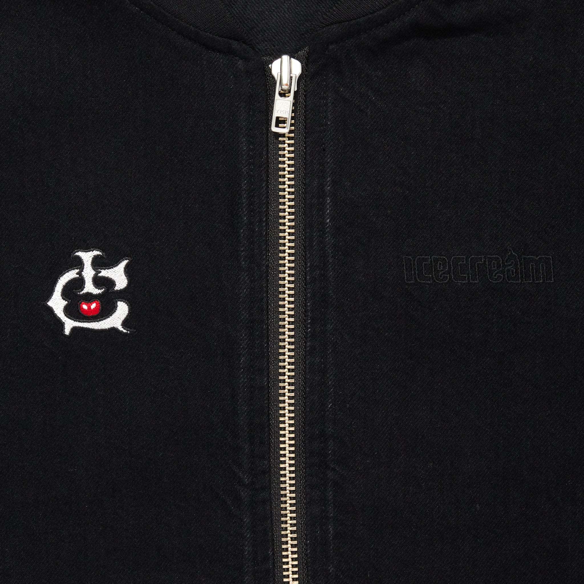 EMBROIDERED LOGO WASHED DENIM ZIP UP JACKET